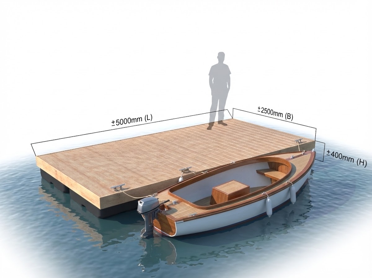 Onze drijvende bootsteigers zijn te bestellen als compleet bouwpakket, inclusief: